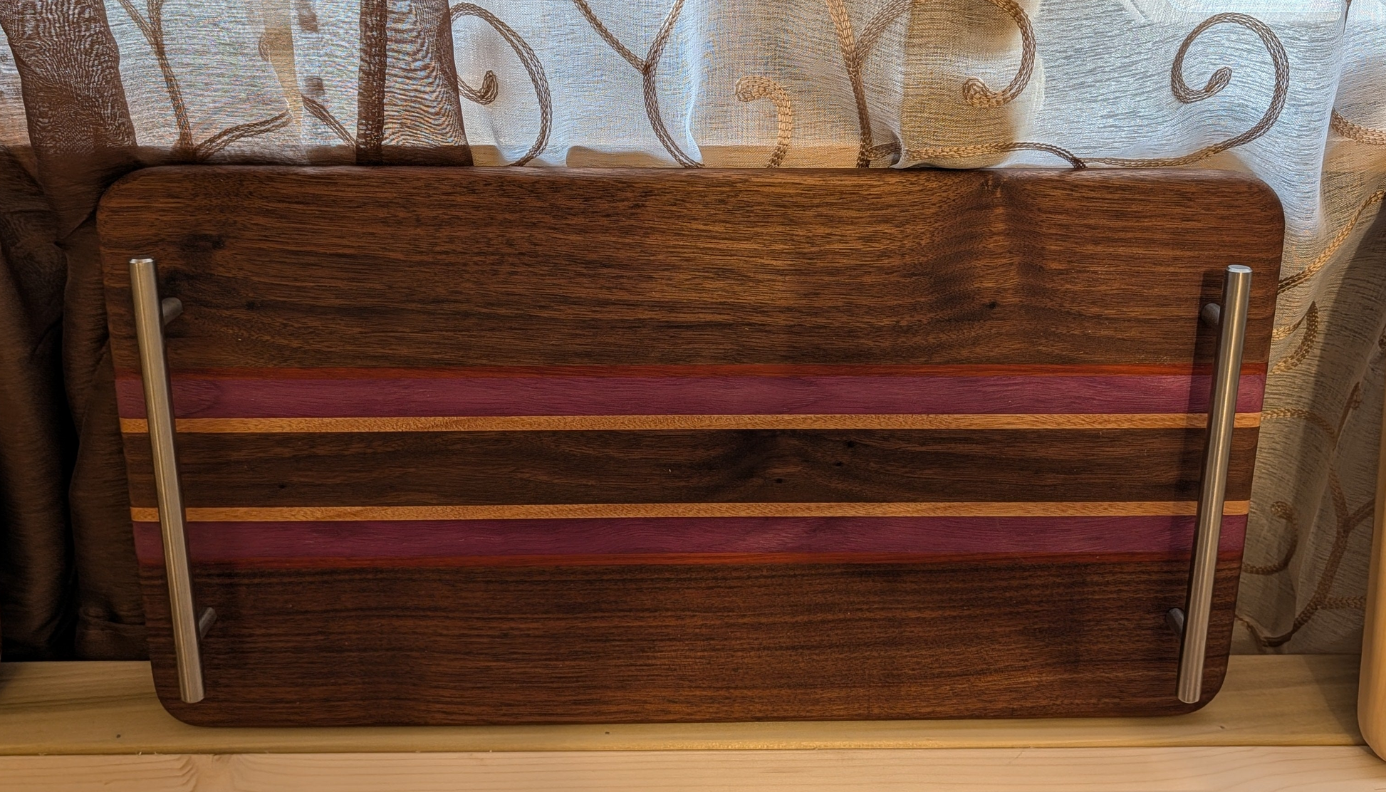 22"x12"x 3/4" black walnut blood wood purple heart with stainless steel handles